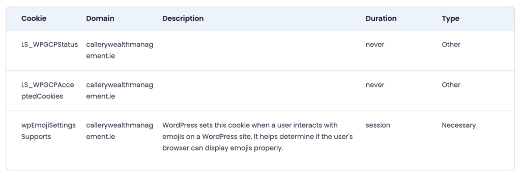 Welcome to Callery Wealth Management Ltd’s website, accessible at callerywealthmanagement.ie (“Website”). We are committed to protecting and respecting your privacy. This policy outlines how we collect, use, and protect any information you provide when using our Website.